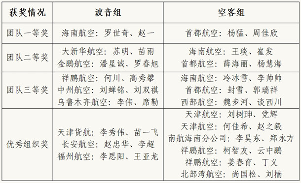 本次竞赛共21支队伍参赛,其中波音组9队,空客组12队。各参赛队在经过3天精彩激烈的角逐,分别完成了模拟机与理论知识竞赛的比拼,通过两环节总分决出了团队一等奖、二等奖、三等奖以及优秀组织奖。