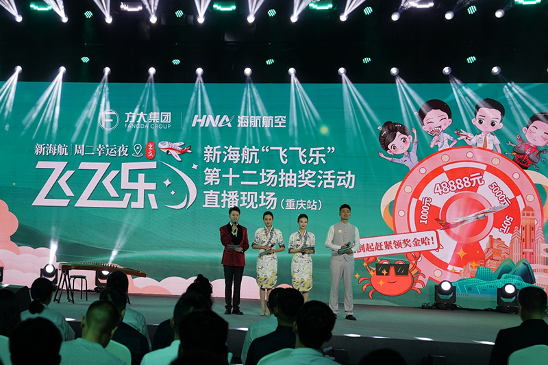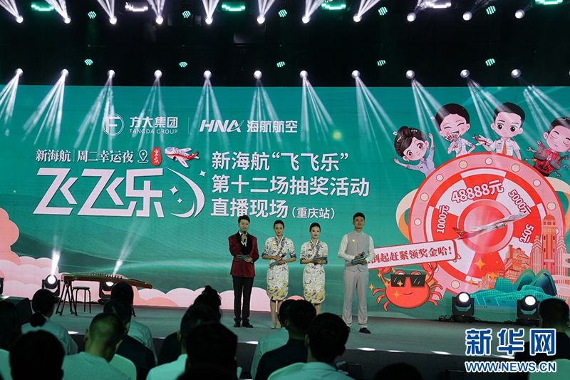 近日,新海航在重庆市再度举办了“飞飞乐”周二幸运夜现金抽奖活动,这是该活动第三次在重庆举行。现金抽奖全程通过“海南航空”App、“海南航空”视频号、“小央视频”抖音号等平台进行同步直播,当期3173个现金奖项获奖者在网友和现场观众的见证下陆续产生。