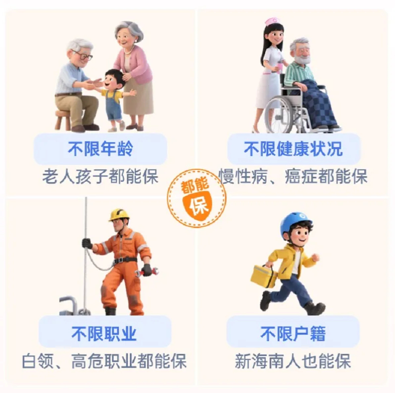 “惠琼保”2026版参保没有年龄、健康状况、既往病史和职业类别的限制,以下人群均可为自己和配偶、子女、父母统一办理参保: