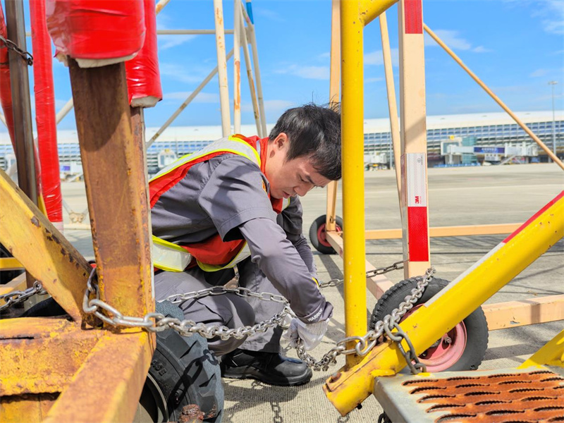 台风来临前,海航斯提斯逐个检查设施设备,开展动态巡查,排查加固风险隐患,清点补充应急物资,储备沙袋、水泵等各类防汛防台物资,全面检查维护抢险救援设备,确保性能良好。