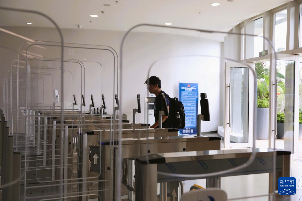 9月25日,一名学生走进海南陵水黎安国际教育创新试验区的图书馆。该馆门禁采用无感借阅系统,可通过人脸识别关联学生名下借阅的书目情况。新华社记者 郑悦 摄