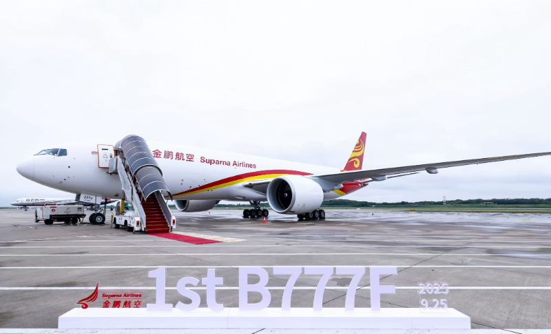 2025年9月25日北京时间14:53,一架注册号为B-227U的波音777F全货机,历经12个小时的长途飞行,从美国西雅图飞抵南京禄口国际机场,加入金鹏航空“大家庭”,这也是金鹏航空引进的首架B777F全货机。