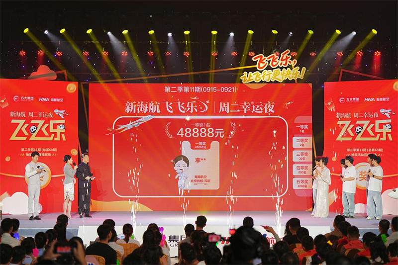 9月23日,恰逢2025年中国农民丰收节,新海航“飞飞乐”周二幸运夜(第二季第11期)抽奖活动在海口举行。本期活动以“新海航·喜丰收”为主题,不仅和线上线下观众分享了新海航在2025年稳健向好的生产经营成绩,更通过现金抽奖与全国旅客共享发展成果。