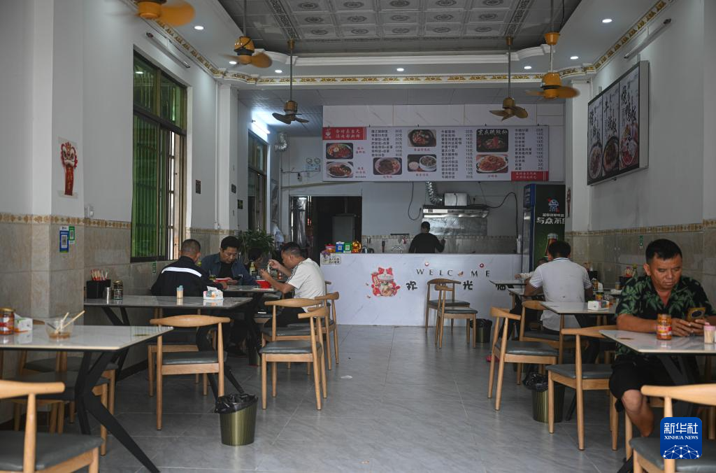 10月6日,人们在海南文昌一家恢复营业的餐厅用餐。新华社记者 蒲晓旭 摄