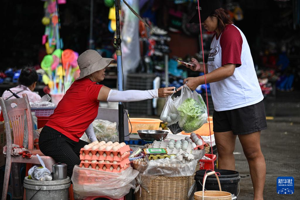 10月6日,顾客在海南文昌一家集贸市场买菜。新华社记者 蒲晓旭 摄