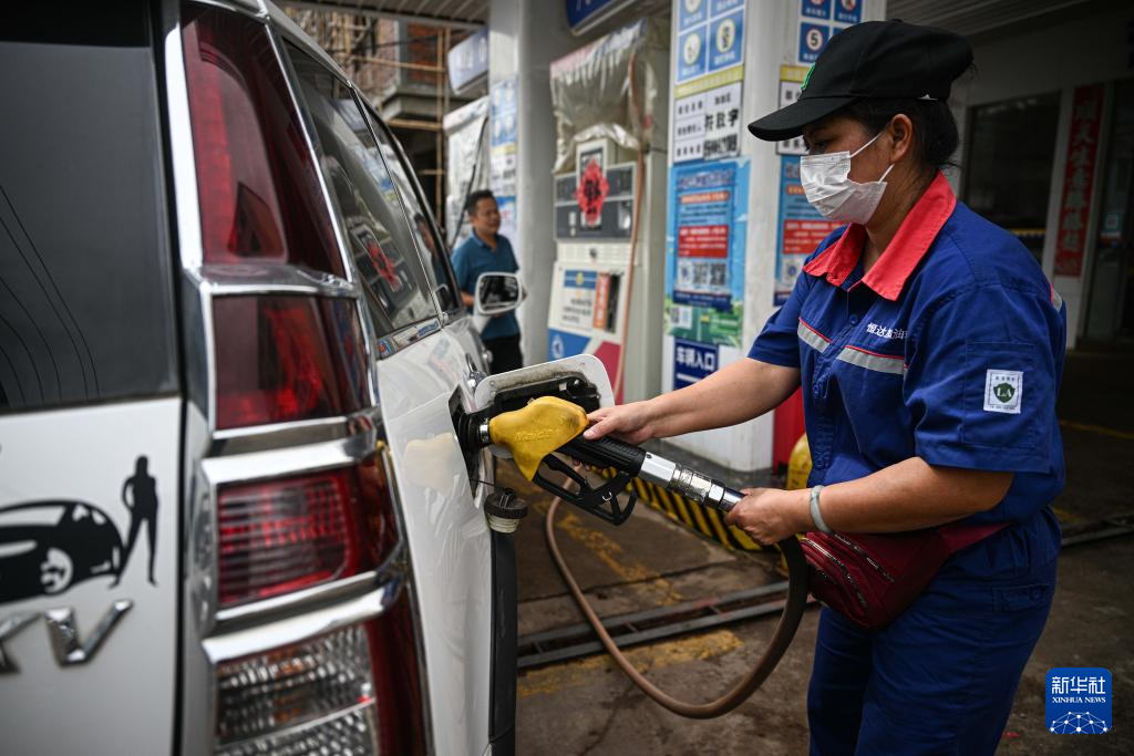 10月6日,在海南文昌一家加油站,工作人员为车辆加油。新华社记者 蒲晓旭 摄