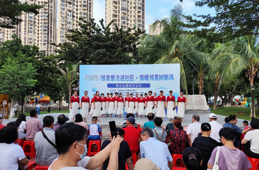 活动现场,海南省人民检察院、海南省人民检察院第二分院、海南省第一中级人民法院、海南省第二中级人民法院等单位的退休高级检察官、法官组成“银发普法团”,围绕居民关注的婚姻家庭矛盾、财产继承纠纷、邻里关系协调等热点问题,结合真实案例开展专题宣讲,用通俗语言将法律条文转化为“生活指南”。