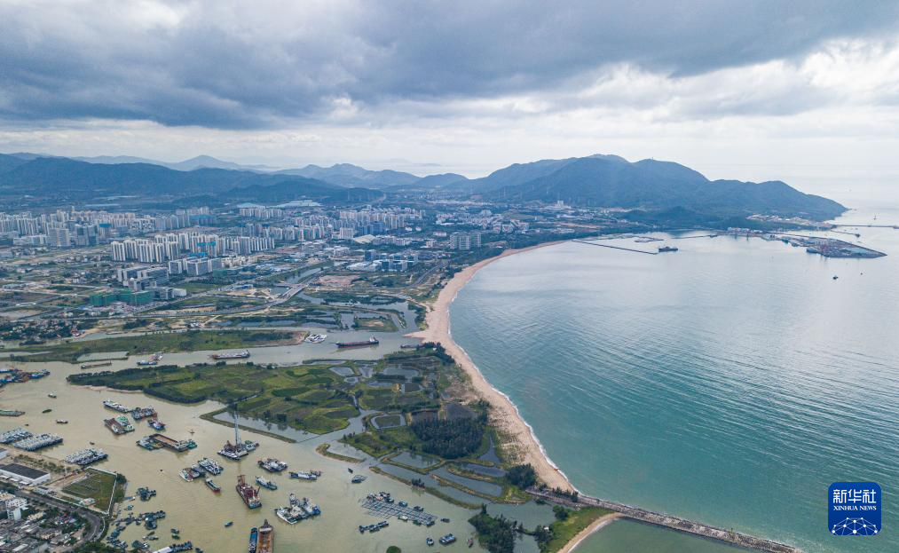 在海南自贸港重点园区——三亚崖州湾科技城拍摄的南山港(无人机照片,10月30日摄)。新华社记者 蒲晓旭 摄