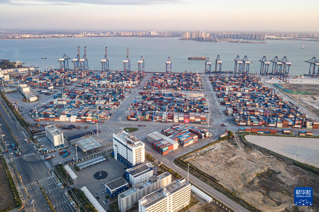 在海南自贸港重点园区——洋浦经济开发区拍摄的洋浦国际集装箱码头(无人机照片,11月21日摄)。新华社记者 蒲晓旭 摄