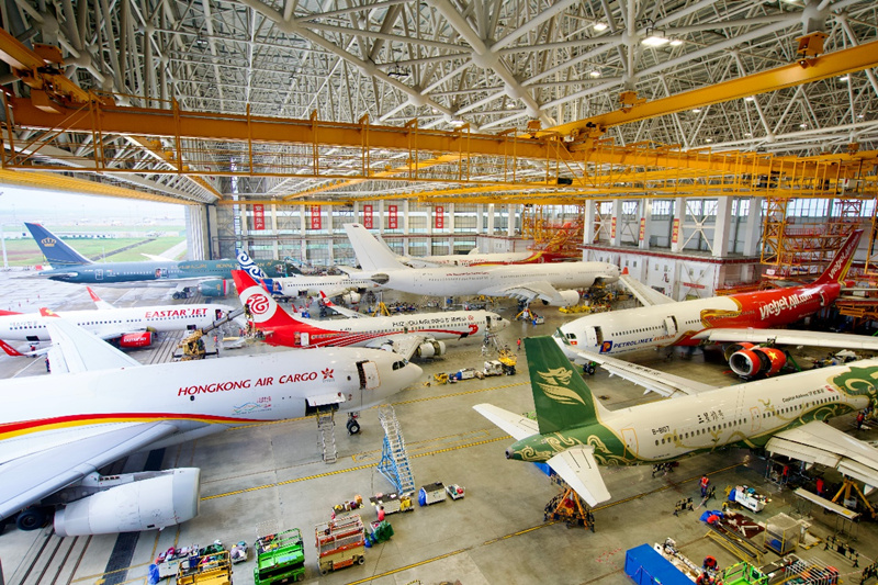 在海南自贸港一站式飞机维修产业基地内,飞机正在接受海航技术提供的航空维修服务。新华网发
