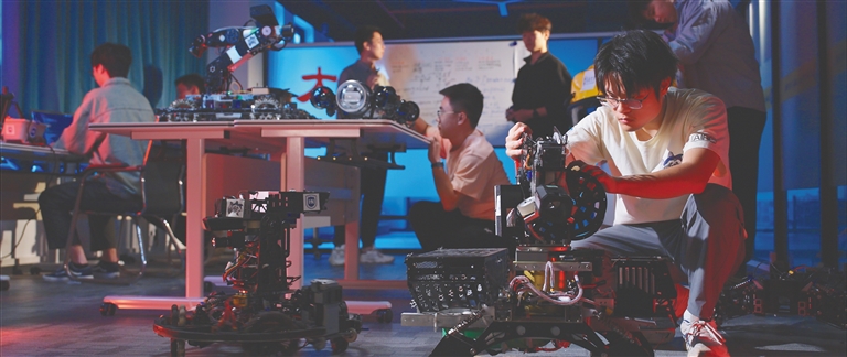 海南大学学生在进行智能无人系统的研发与实践。