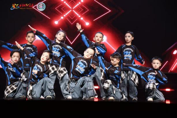 海南省青少年体育联合会跨年少儿街舞齐舞大赛现场。