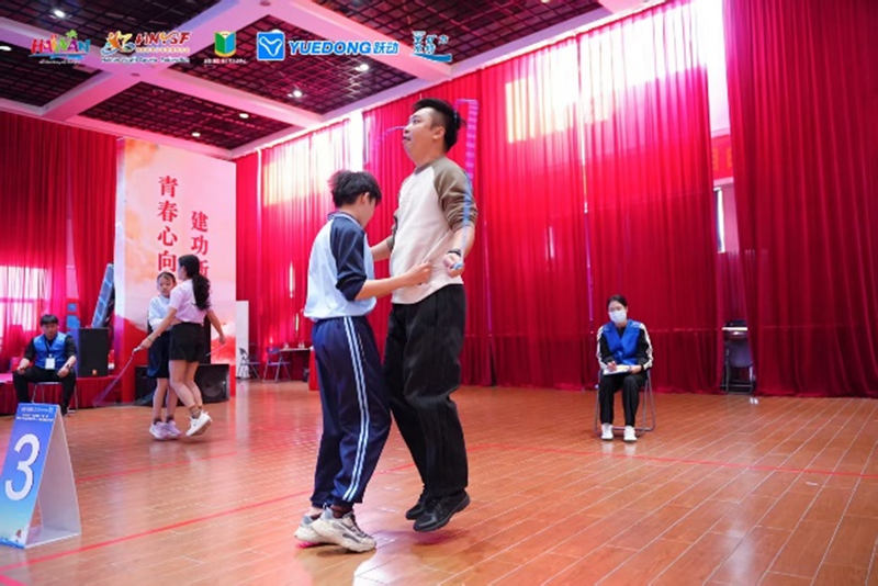 亲子项目中,家长与孩子手牵手共同挥动跳绳,默契配合完成一次次跳跃。一根根跳绳,在现场不仅连接起比赛的节奏,更串起了亲子间的情感交流与协作默契。