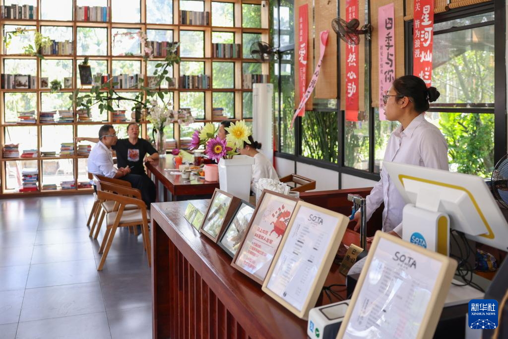 1月27日,顾客在海南定安县富文镇的九所会客厅水塔咖啡馆里点单。新华社记者 张丽芸 摄