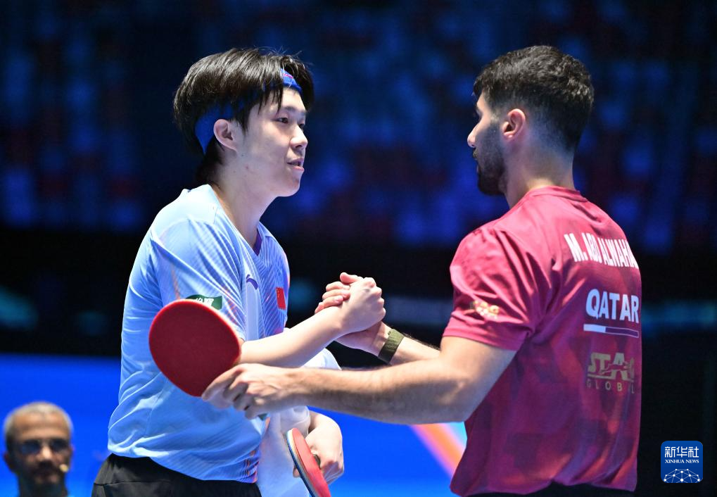林诗栋3:1战胜沙特阿拉伯队的舒莱比。“与他是第一次打,第三局他的相持球和自己的无谓失误导致自己输掉了。淘汰赛对手会越来越强,自己一定会好好准备。”林诗栋说。