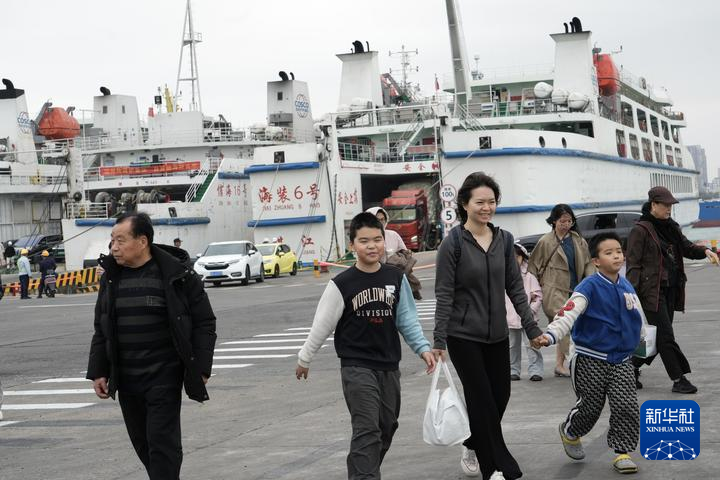 2月8日,乘船越过琼州海峡的旅客抵达海口市秀英港。新华社记者 夏天 摄