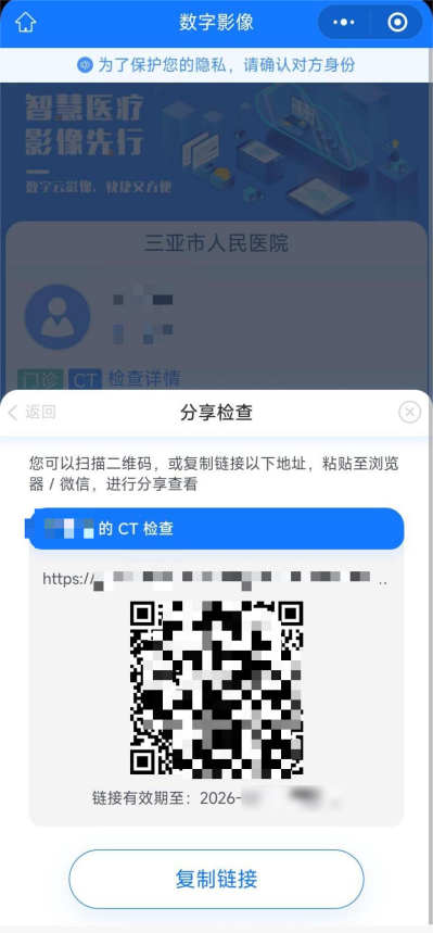 患者可通过二维码一键分享完整影像、报告。