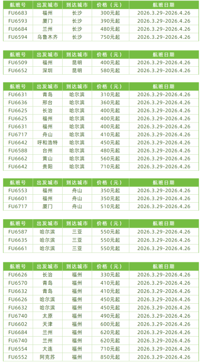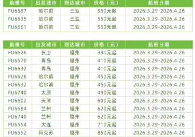 福州航空推出换季踏春航线 300元起开启春日之旅