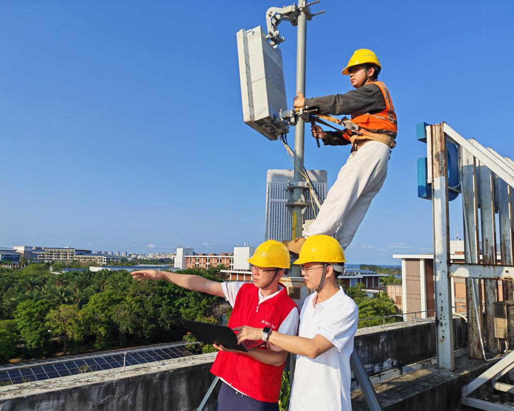 中国移动网络优化工程师在博鳌进行5G网络覆盖优化调整。