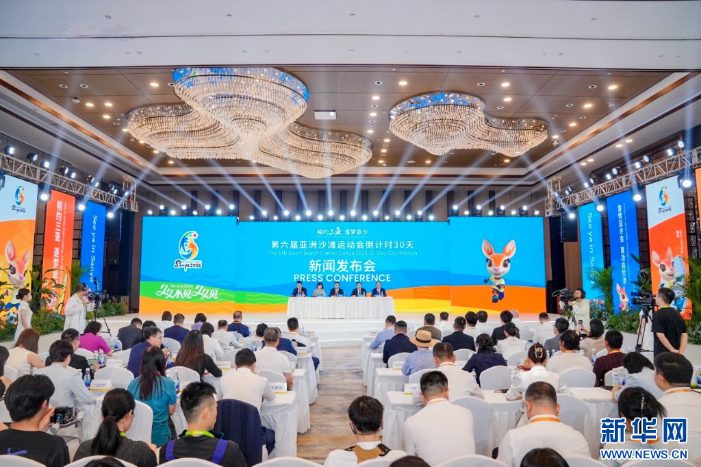 第六届亚洲沙滩运动会倒计时30天新闻发布会现场。新华网发