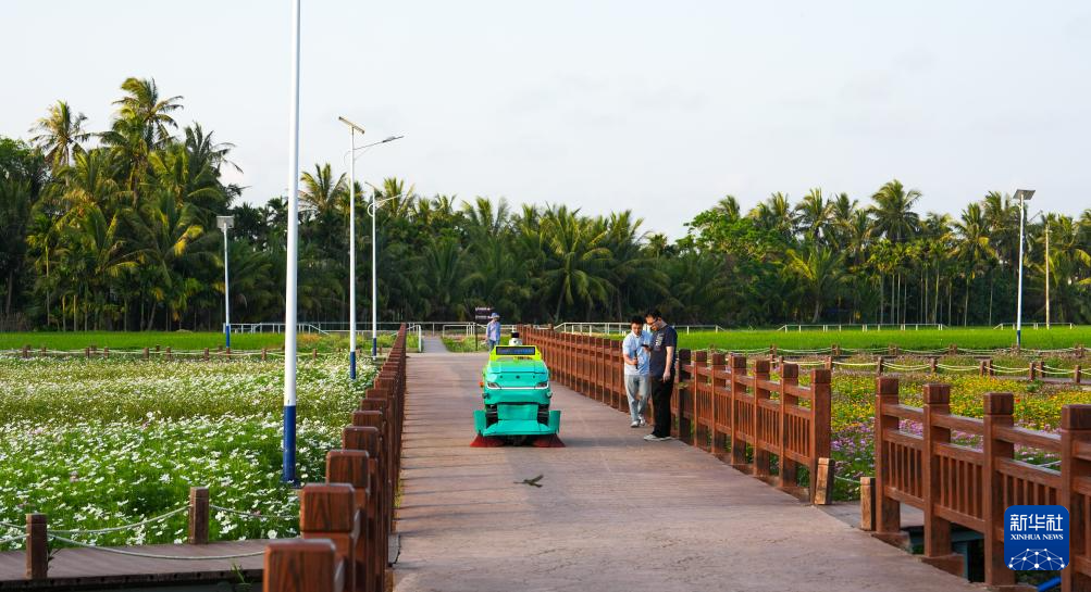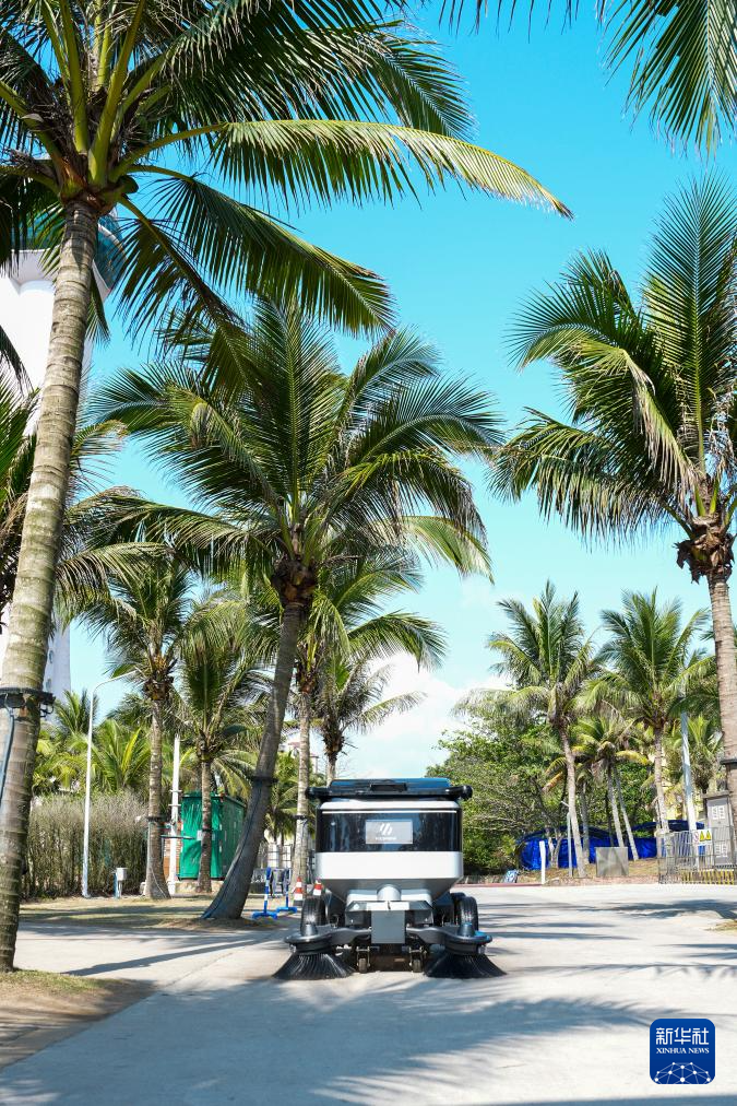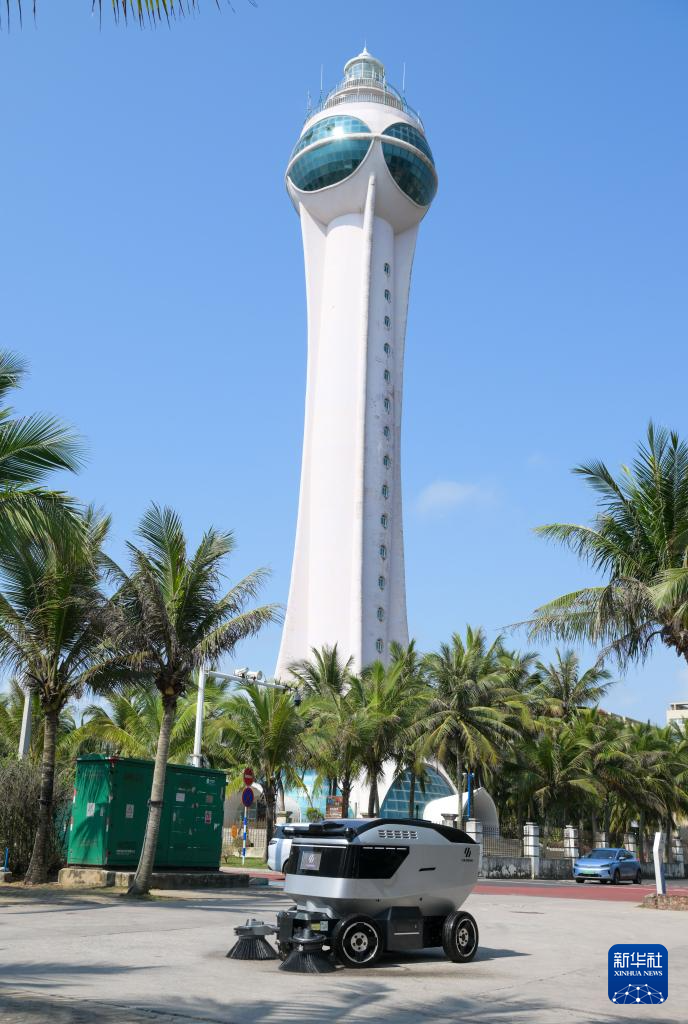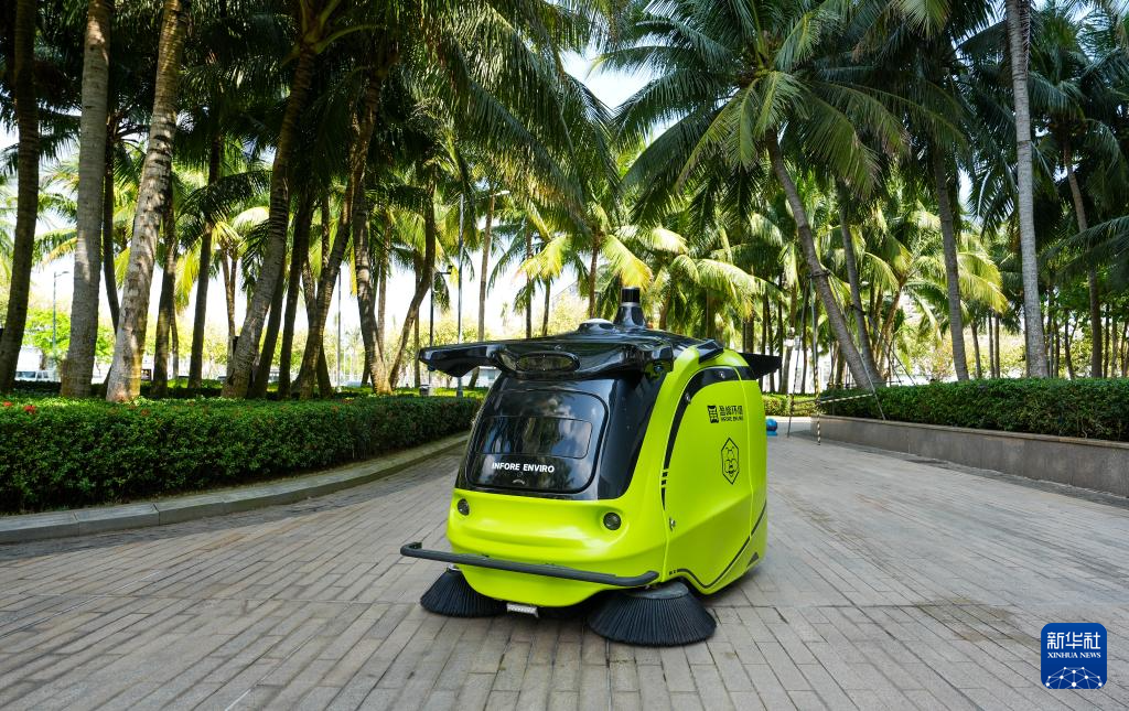 小蜜蜂智慧清洁机器人在位于海南省琼海市潭门镇的中国(海南)南海博物馆周边作业(3月25日摄)。新华社记者 刘莲芬 摄