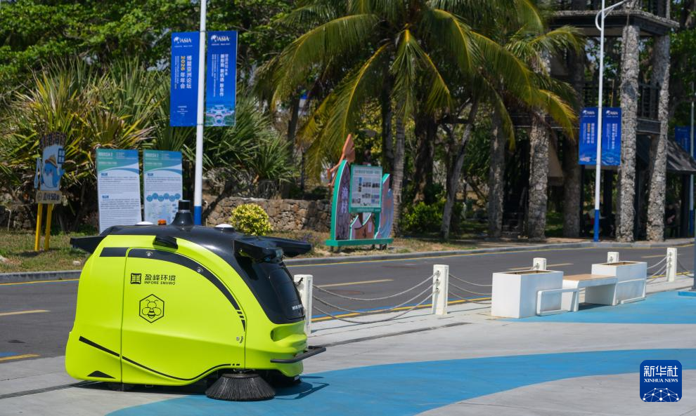 智能清扫机器人在海南省琼海市博鳌镇作业(3月25日摄)。新华社记者 刘莲芬 摄