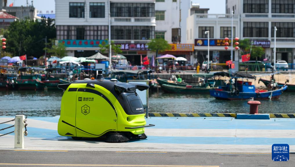 小蜜蜂智慧清洁机器人在位于海南省琼海市潭门镇排港村作业(3月25日摄)。新华社记者 杨冠宇 摄