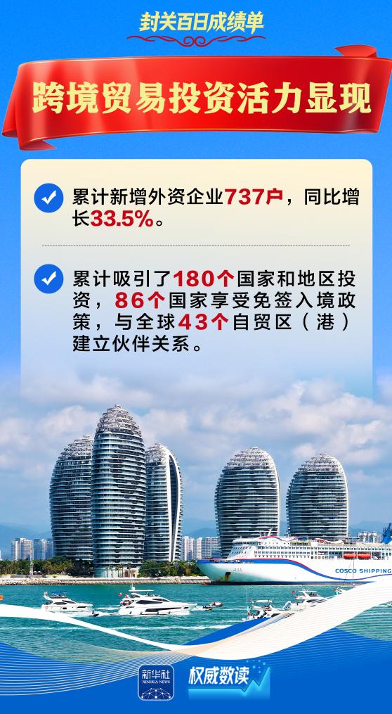 3月27日,海南自贸港迎来全岛封关运作100天。封关以来,自贸港以制度集成创新为核心,以高水平开放为牵引,稳扎稳打、有序推进,政策落地见效、活力持续释放,自贸港建设呈现出蹄疾步稳、欣欣向荣的良好态势。我们梳理了9组数据,跟随海报,读懂海南自贸港封关百日“成绩单”。