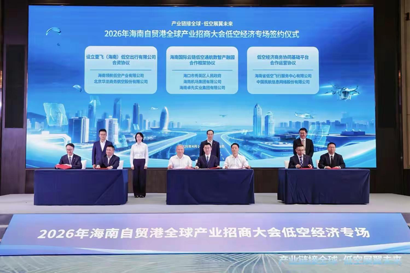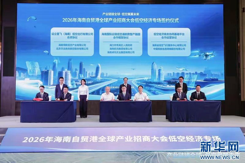 2026年海南自贸港全球产业招商大会低空经济专场签约仪式现场。新华网发