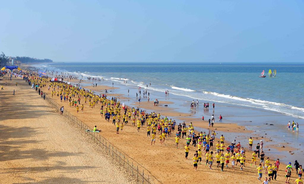 图为2014海口国际沙滩马拉松赛现场。新华社记者 郭程 摄