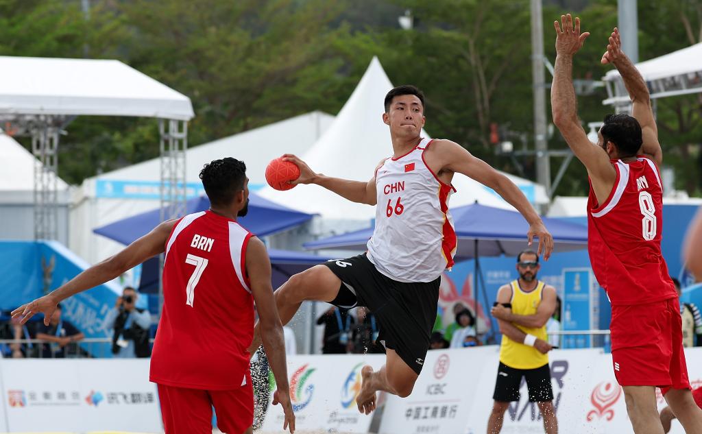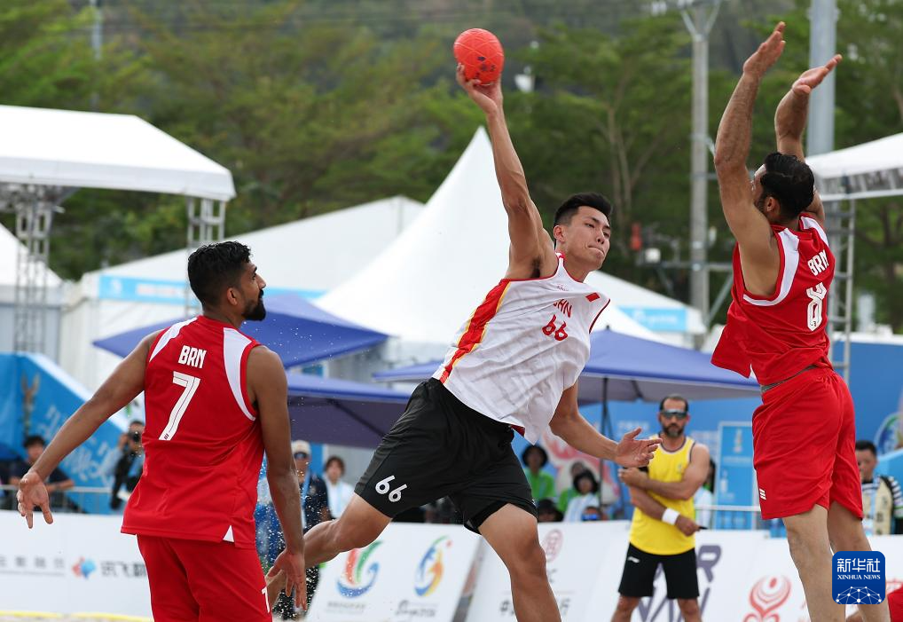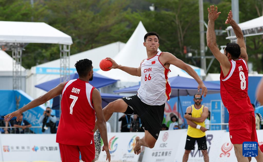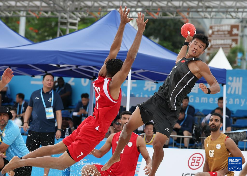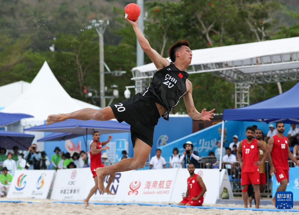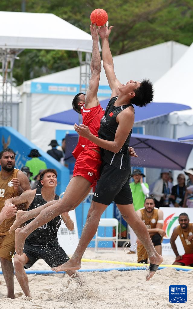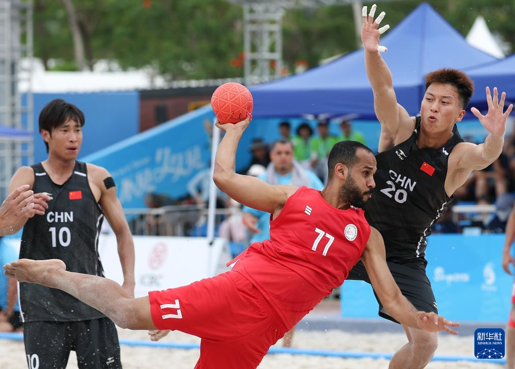 4月21日,在海南三亚举行的第六届亚洲沙滩运动会沙滩手球男子小组赛中,中国队0比2不敌巴林队。
