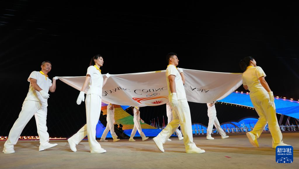 4月22日,亚奥理事会会旗在开幕式上入场。新华社记者 陈思汗 摄