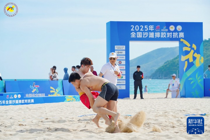 图为第六届亚沙会沙滩卡巴迪男子小组赛。新华社记者 赵子硕 摄