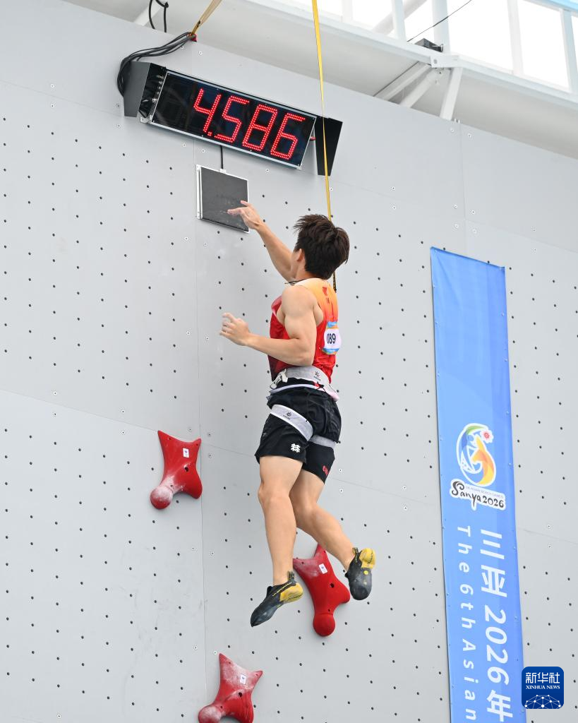 新华社三亚4月28日电(记者李琳海 杨博毅)28日,在海南三亚举行的第六届亚洲沙滩运动会上,中国选手赵一程战胜印度尼西亚选手希尔米,获得男子速度攀岩冠军。