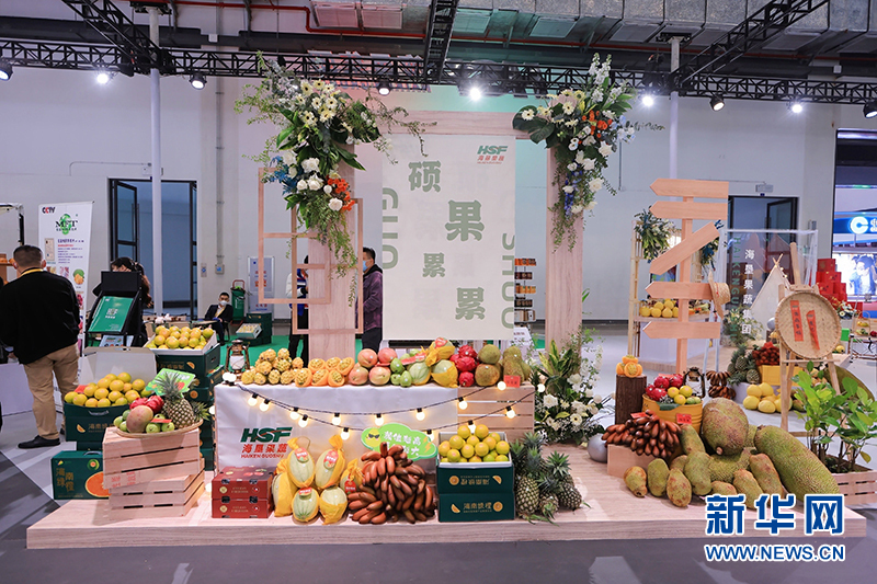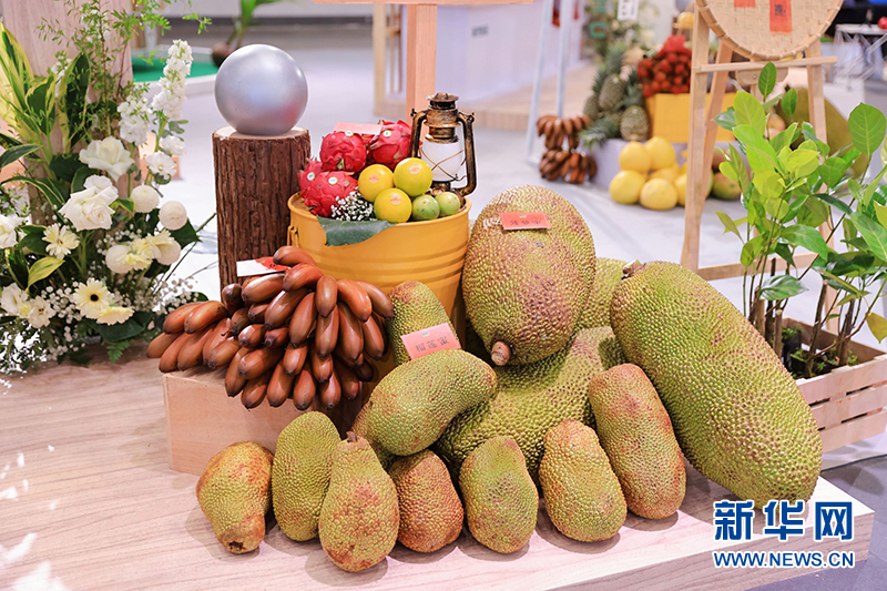 2022年海南农垦馆展示的新鲜果蔬。新华网发(任桐 摄)